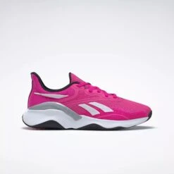 Keep your energy high in these women’s Reebok shoes. Designed to support the varied movements of high-intensity interval training, they have an upper that mixes stretchy mesh with non-stretch mesh for lateral support. A decoupled rubber outsole with forefoot grooves offers flexibility and traction.