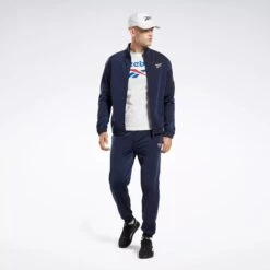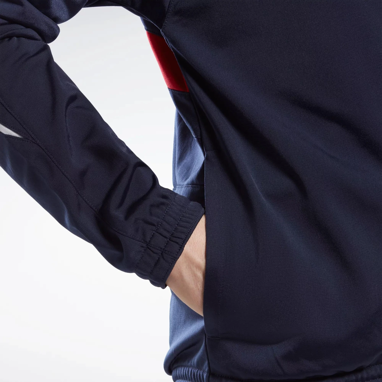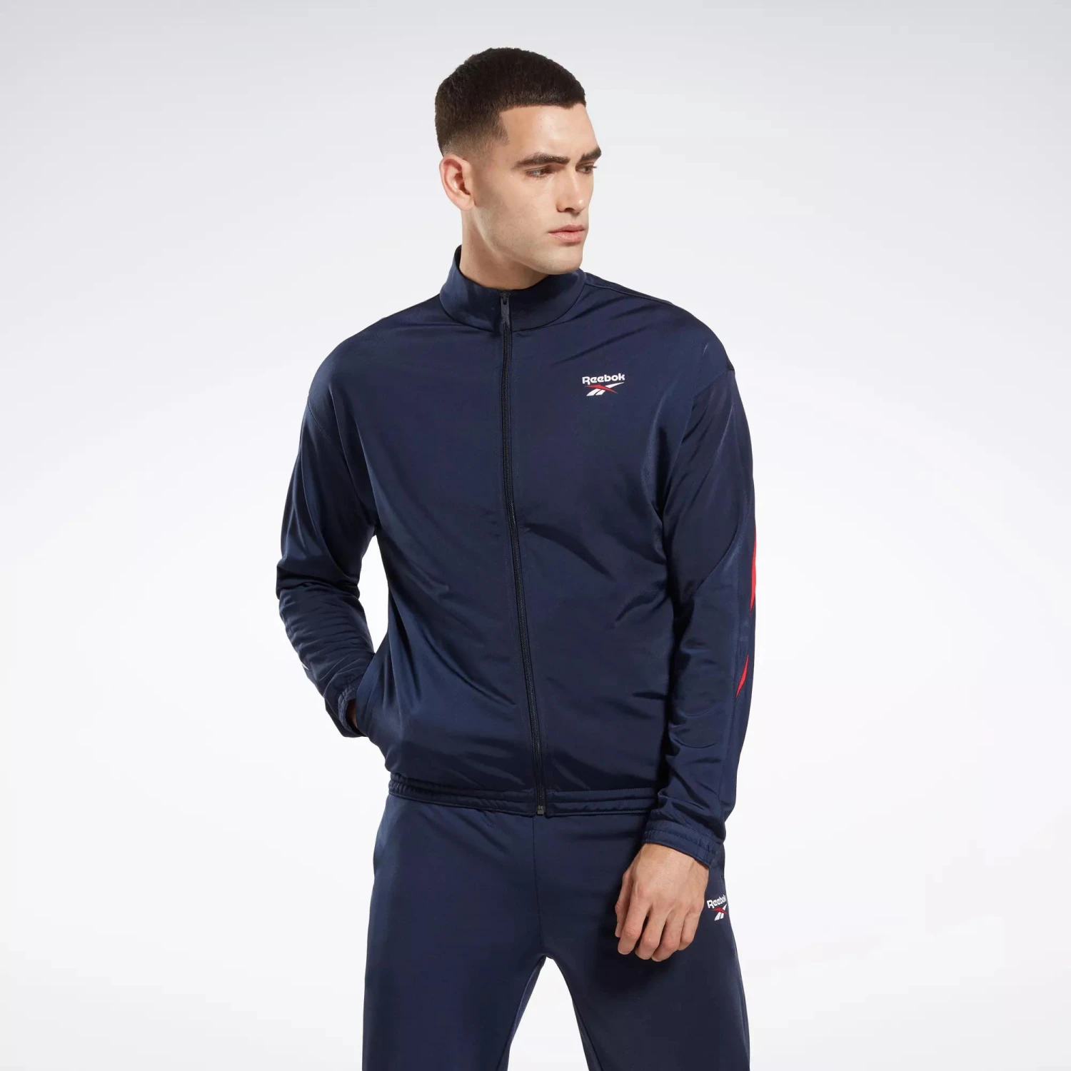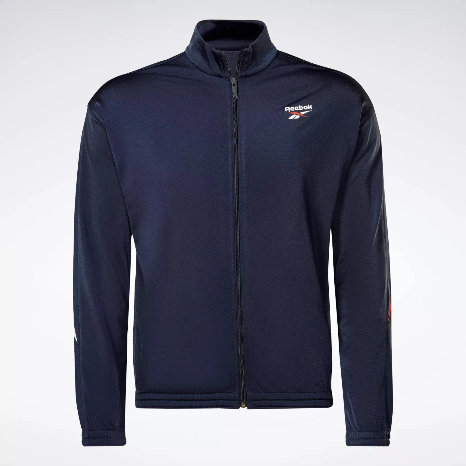 Whether you’re warming up, cooling down or just running errands, this Reebok track jacket is ready to go when you are. The elastic cuffs and hem stay put as you move. A bold Vector logo across the back represents your life in motion.