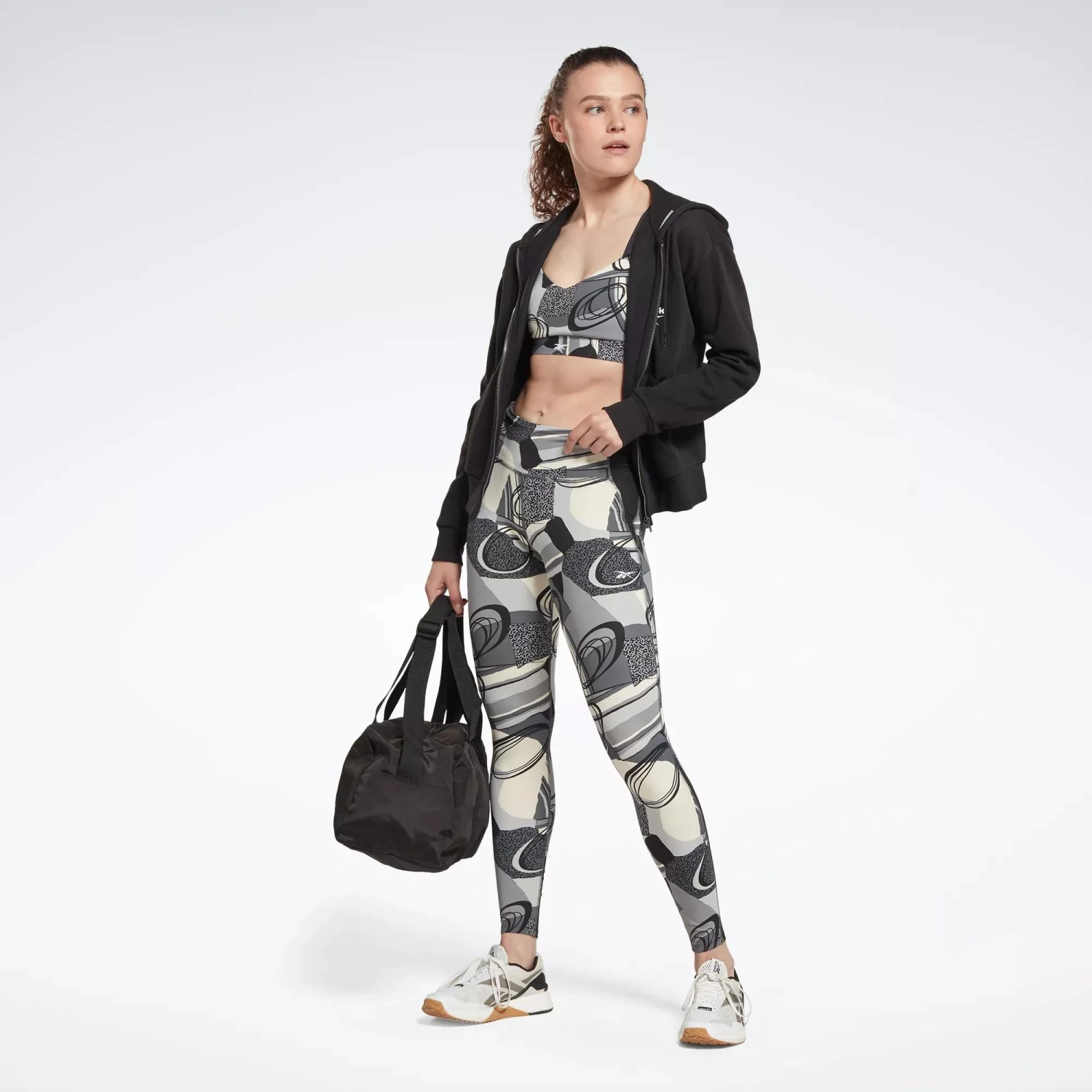 A good workout is the best mood booster. These women’s training leggings are created for any workout, any time. Speedwick helps you stay dry on the bike or in the weight room. MOTIONFRESH anti-odor technology keeps you feeling confident. The high-energy print was inspired by a bold jacket in the Reebok archives.