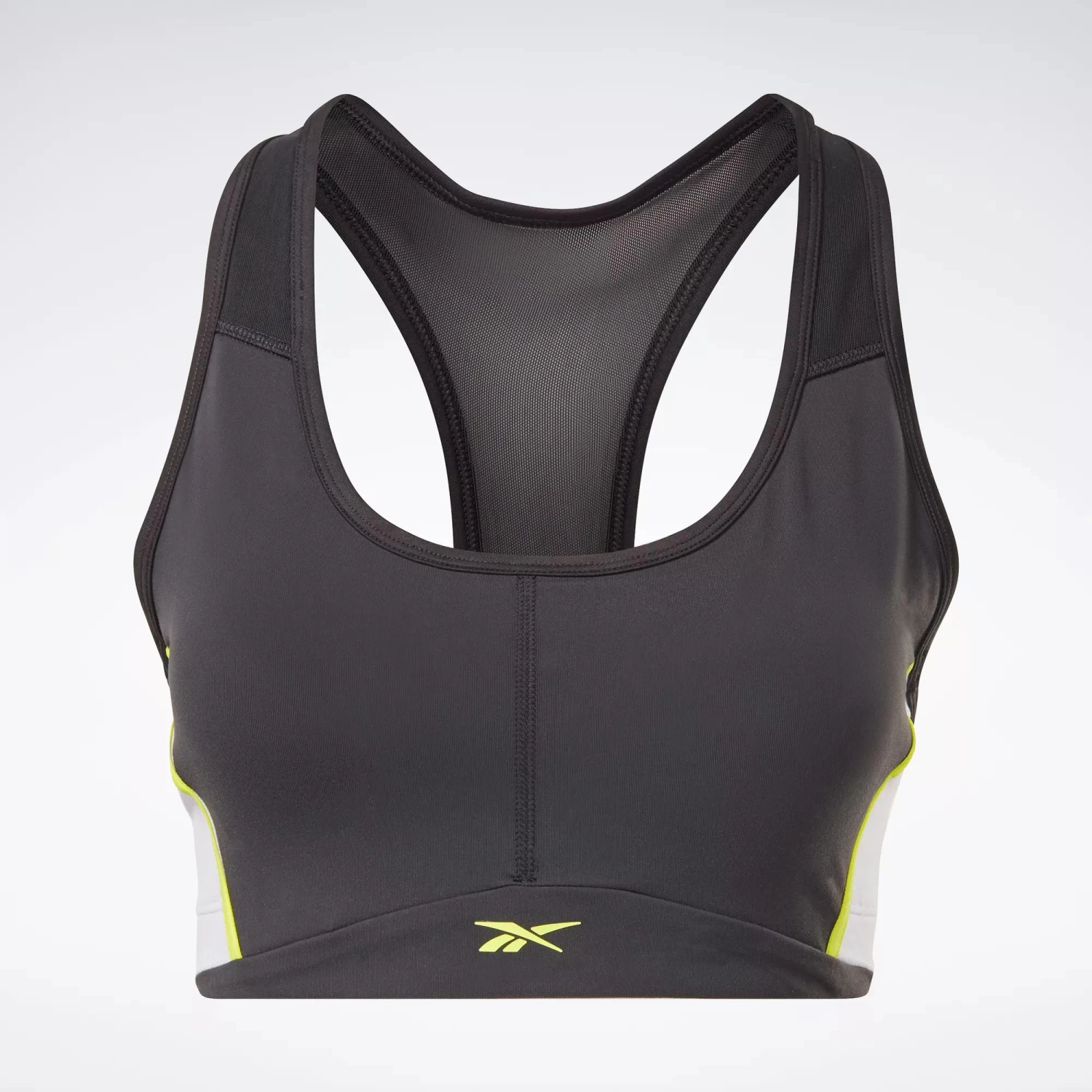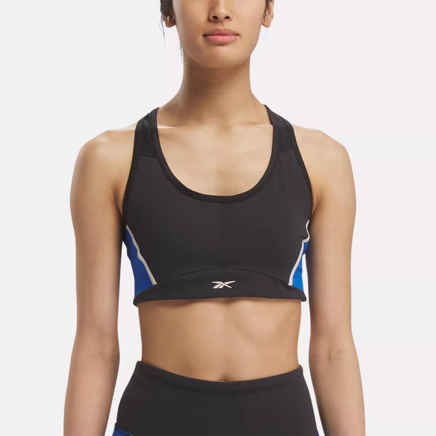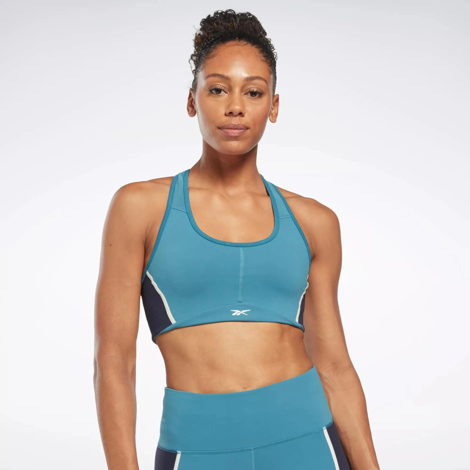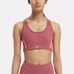 This Reebok sports bra offers medium support for spin class or personal training sessions. It has a pullover design, with removable pads for shaping and coverage. Angled side seams give you stability and support. When it’s time to up the intensity, Speedwick tech helps wick sweat away from your skin.
