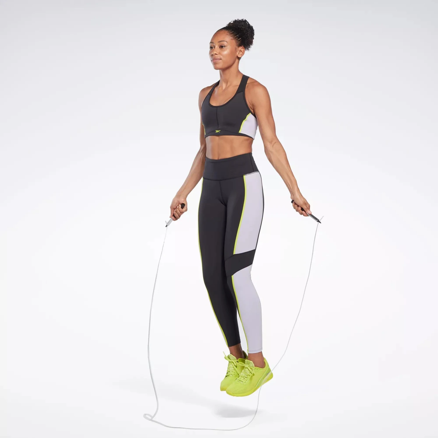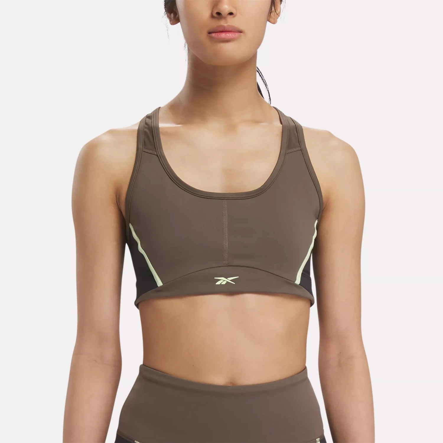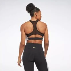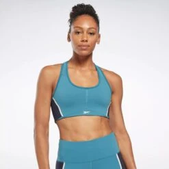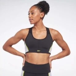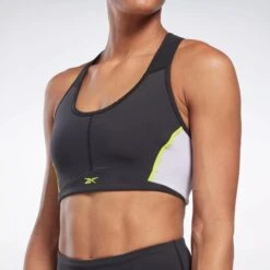 This Reebok sports bra offers medium support for spin class or personal training sessions. It has a pullover design, with removable pads for shaping and coverage. Angled side seams give you stability and support. When it’s time to up the intensity, Speedwick tech helps wick sweat away from your skin.