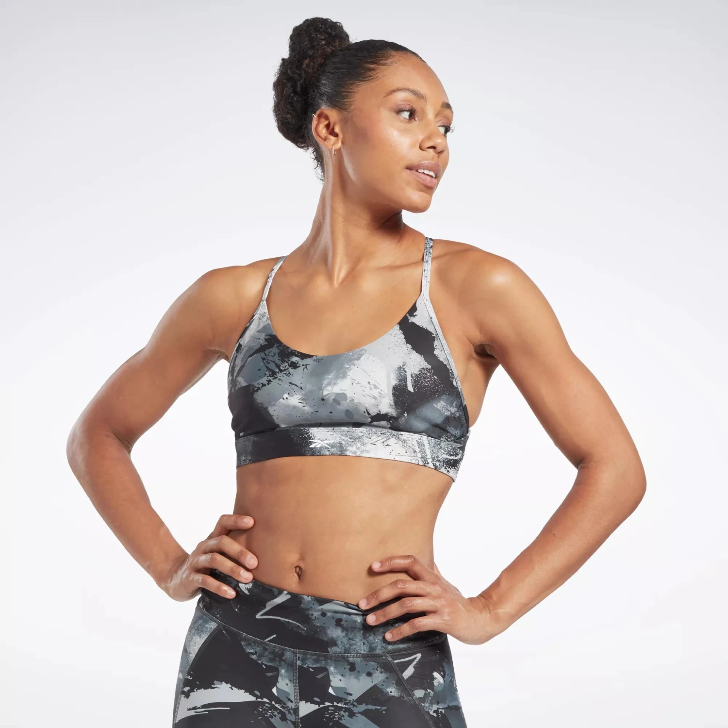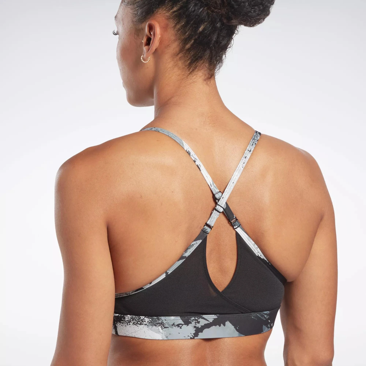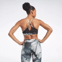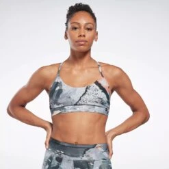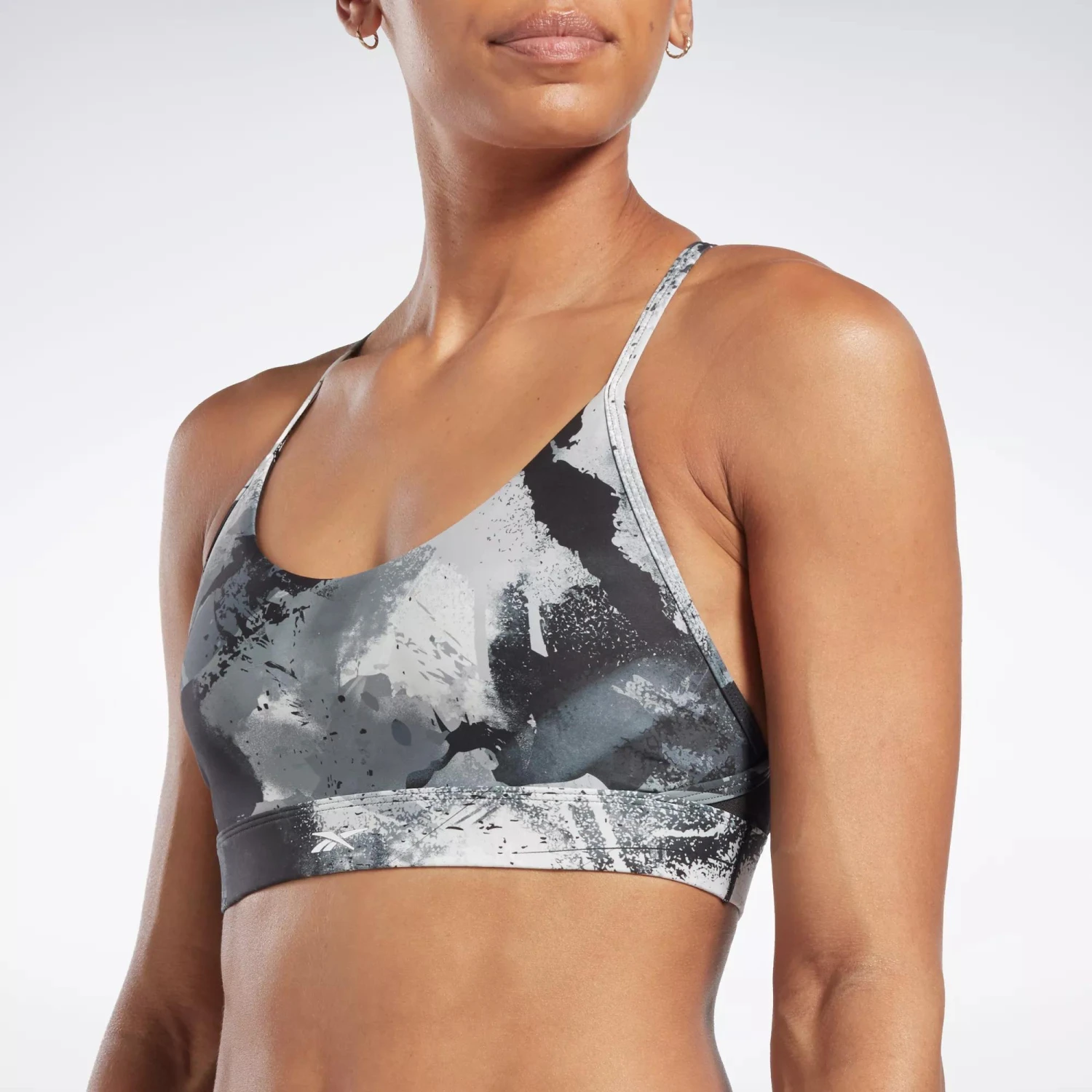 From spin class to the ski erg, this Reebok sports bra gives you a confidence boost in any workout. Designed for medium-impact sessions, it has adjustable straps and removable pads that let you personalize the fit and coverage. The painterly print gives it a bold, colorful look.
