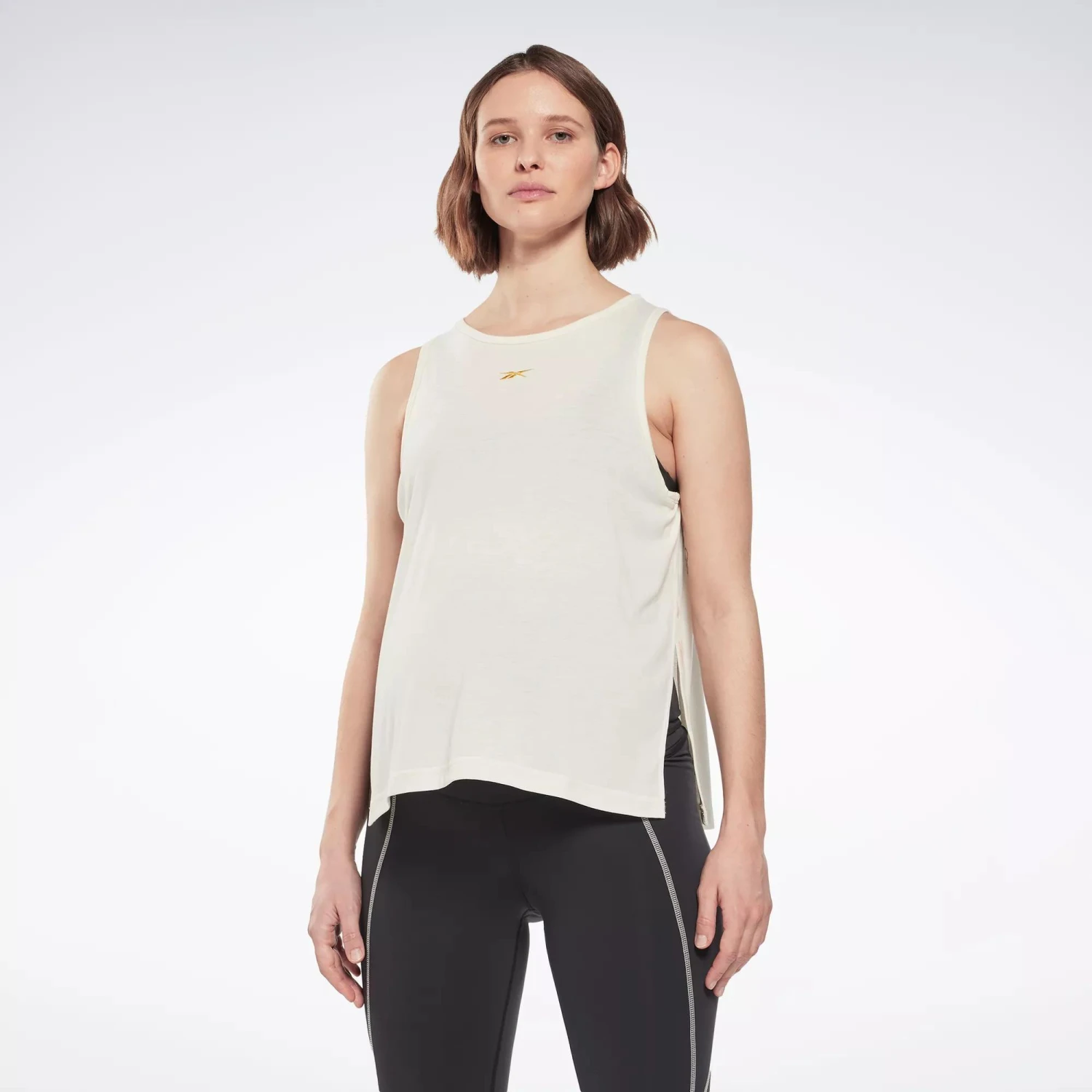 Exercise is a way to take care of yourself throughout your pregnancy. This Reebok maternity tank top is made of comfy jersey that feels soft against your skin. The relaxed fit accommodates your shape for nine months and beyond.