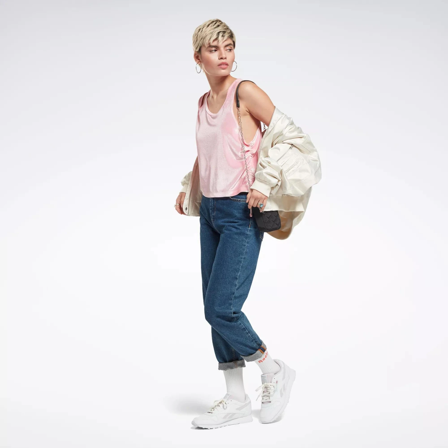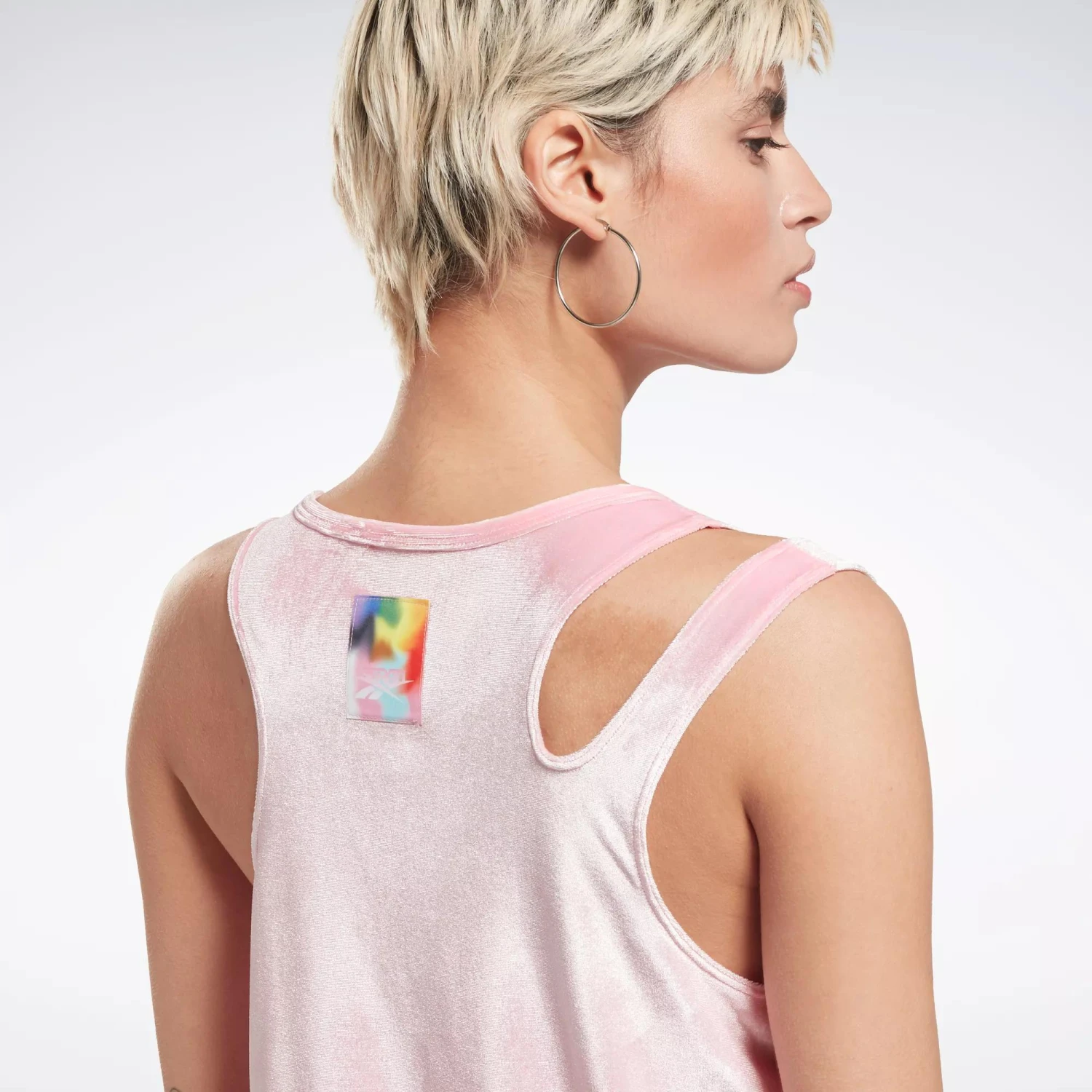 South African designer Nao Serati creates clothes through a lens of love and acceptance. This Reebok Pride tank top is unique, just like you. The asymmetrical shoulder strap gives you a different look you can match with jeans or pants. Drawcords on the sides let you wear it loose, relaxed or snug.