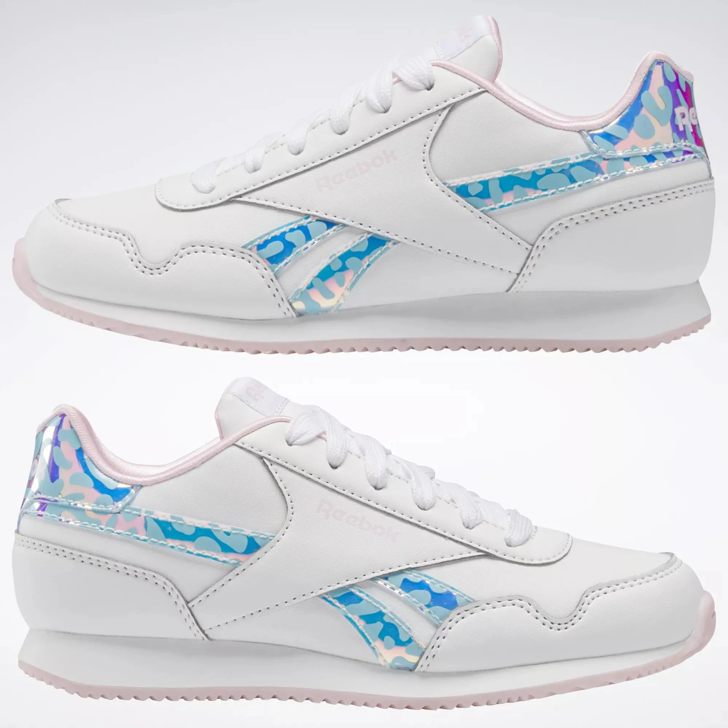 Bring out their wild side in these Reebok girls’ shoes. The classic silhouette features a lace closure and a textile lining. Iridescent animal print detailing makes this staple something to remember.