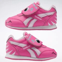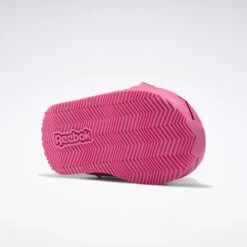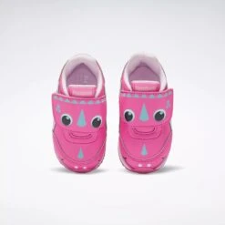 Let her take the animals she loves with her everywhere she goes in these toddler girls’ Reebok shoes. Looking down at her feet will bring a smile to her face when she sees her favorite creature looking back. A large strap closure offers easy on and off for when little legs are ready for their next adventure.