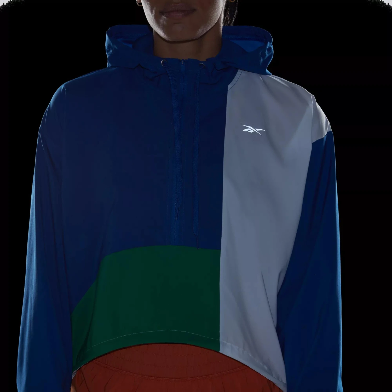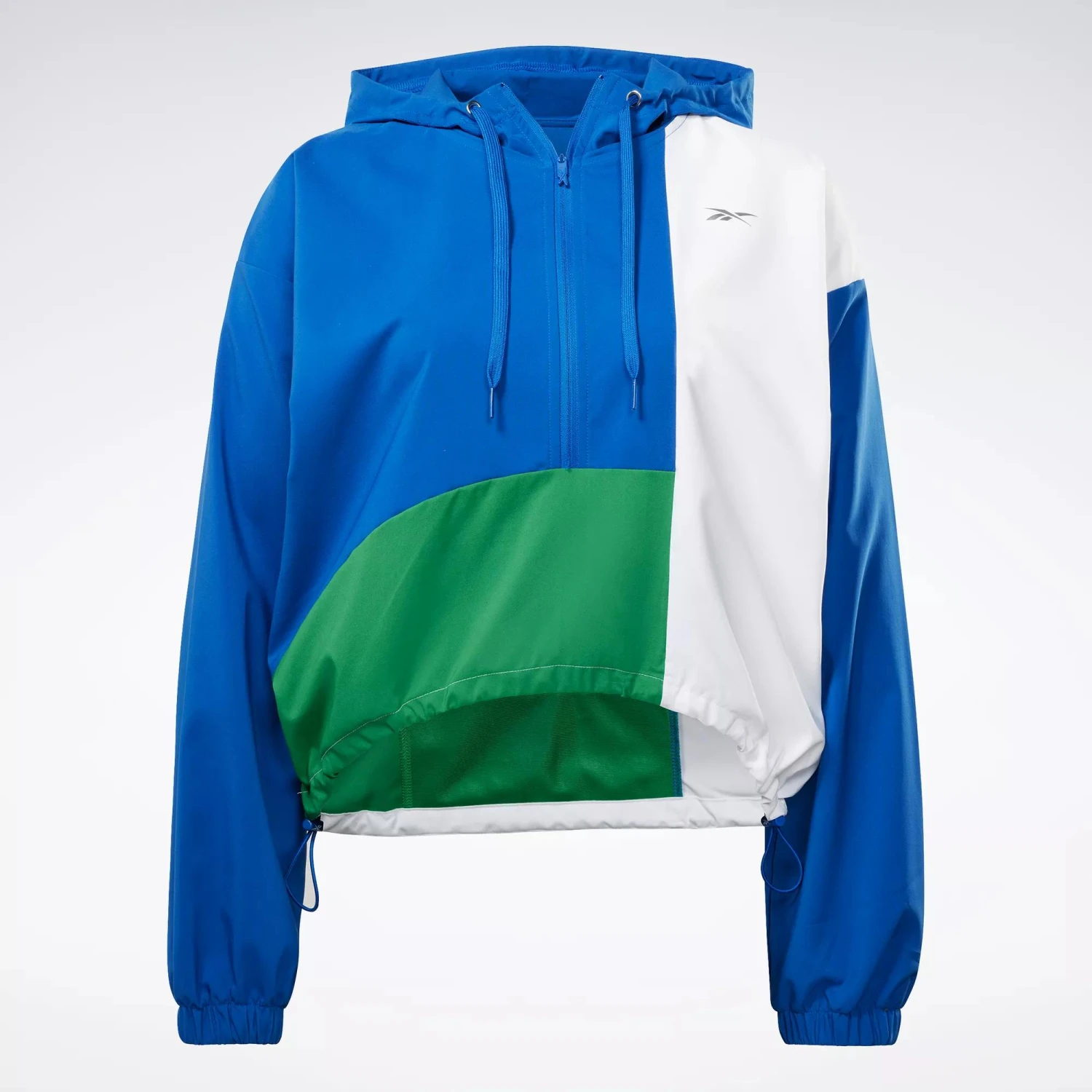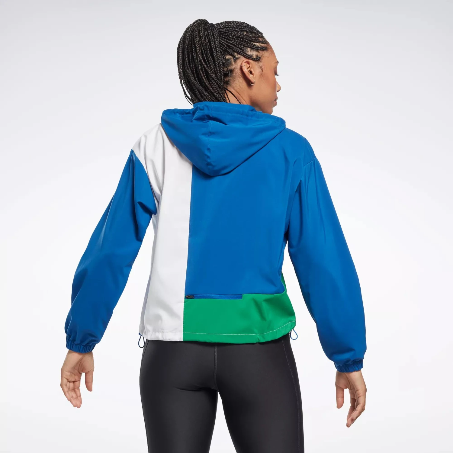 This women’s Reebok jacket is made in a loose fit for easy layering. Cinch up the hem and hood for an extra cozy feel. Stash your small essentials in the back zip pocket and you’re good for the day.