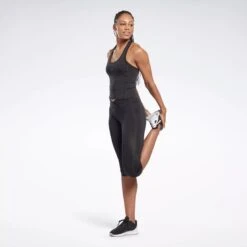 Run the stadium stairs or churn through leg day at the gym. These women’s Reebok capri-length tights keep you cool and dry thanks to sweat-wicking Speedwick technology. The mid-rise waist has a crossover design for a flattering fit. A stash pocket at the back holds your key and card while you train.
